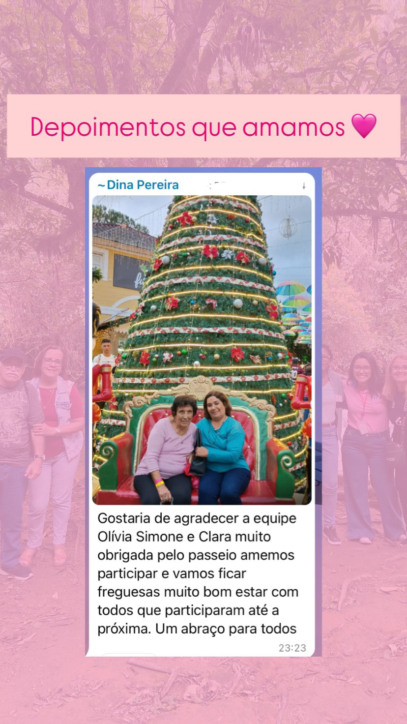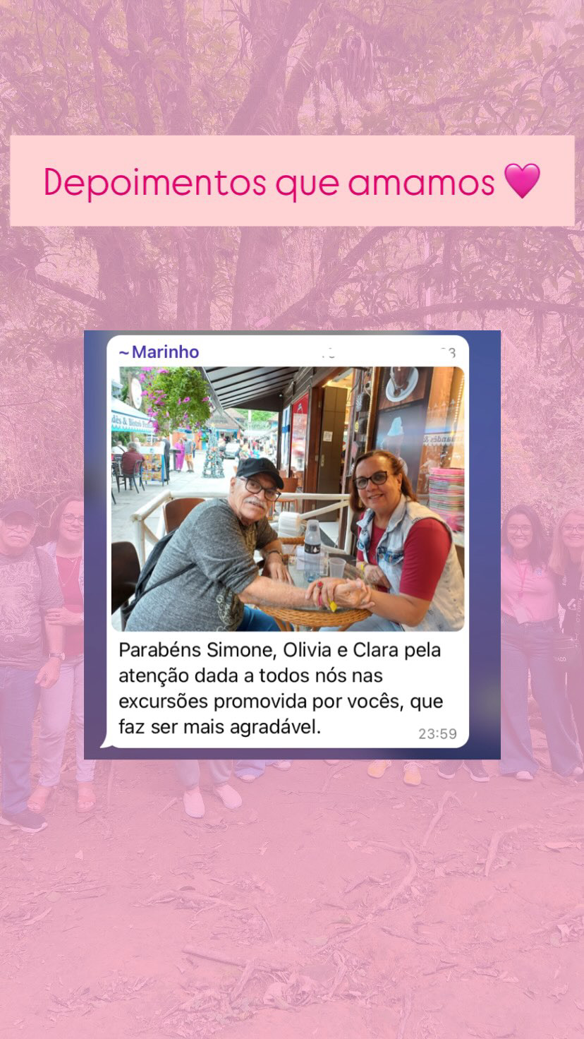 Nosso grande diferencial é o clima familiar, atenção aos detalhes e roteiros pensados para pessoas com mais de 50 anos, garantindo conforto, lazer e novas amizades.